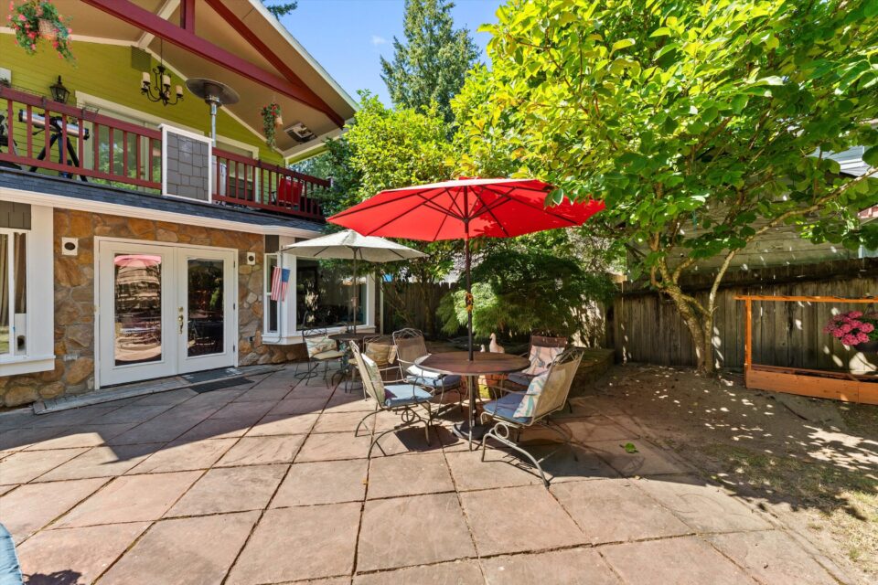 - 1200 square foot concrete patio with wrought iron railing for safely ambulating / exercising outdoors and enjoying Summer weather