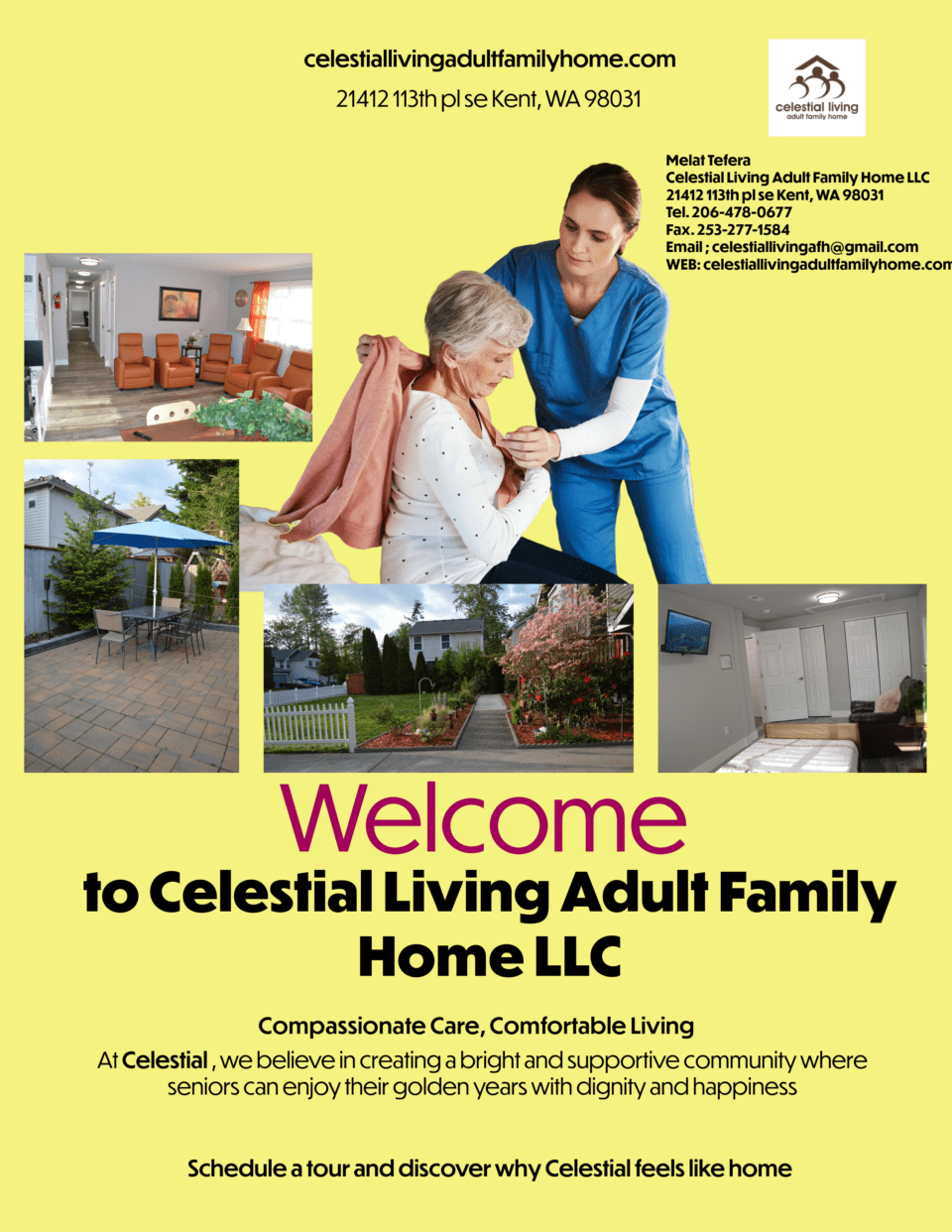 "At Celestial Living Adult Family Home, our vision is to create a nurturing, comfortable, and dignified environment where elderly residents receive compassionate, personalized care that enhances their quality of life. We aim to provide a peaceful haven that promotes independence, fosters meaningful relationships, and ensures each individual's emotional, physical, and social well-being. We are committed to being a trusted partner in our residents' journey, creating a space where they can thrive with respect, love, and community.