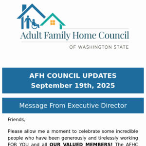 AFH Council Updates September 19th, 2025