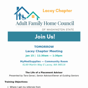 Tomorrow: Lacey Chapter Meeting
